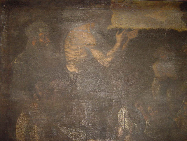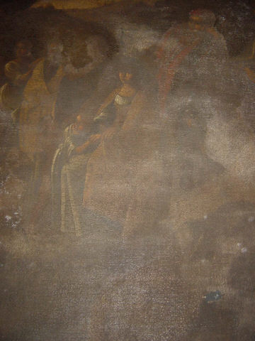 Pintura a óleo sobre tela, de forma rectangular. A pintura encontra-se em muito mau estado de conservação, muito escurecida, pelo que é difícil a sua leitura. Trata-se, muito provavelmente, de uma Pregação de São João Baptista onde este nos aparece do lado esquerdo, em pé e de perfil, tendo à sua volta uma multidão que o ouve. De entre as personagens que assistem podemos distinguir, também do lado direito, um homem de troco nu e de turbante que se encontra voltado de costas para o espectador e, do lado direito e em frente de São João, uma senhora com um toucado de forma circular que tem junto de si uma criança. Na parte superior, uma paisagem que se recorta contra o céu. A moldura é em madeira castanha escura.